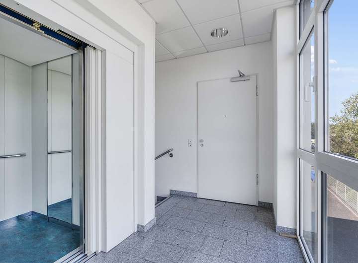 - Integrierter hydraulischer Aufzug mit heller Kabine und Spiegelakzenten