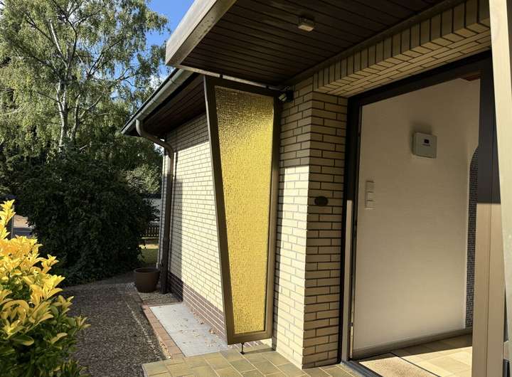 Dabei wurde das Haus recht mittig platziert, so dass man einen über sehr geschützten rückwärtig gelegenen Gartenbereich und einen ansprechenden Vorgarten verfügt.