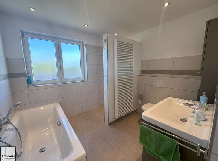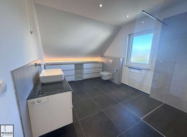 Das ausgebaute Dachgeschoss bietet zwei weitere Zimmer sowie zusätzlichen Stauraum in einem Abstellraum. Ein zweites Tageslichtbad komplettiert die Etage und sorgt für hohen Wohnkomfort. Damit ist das Haus auch für Familien mit größerem Platzbedarf bestens geeignet.