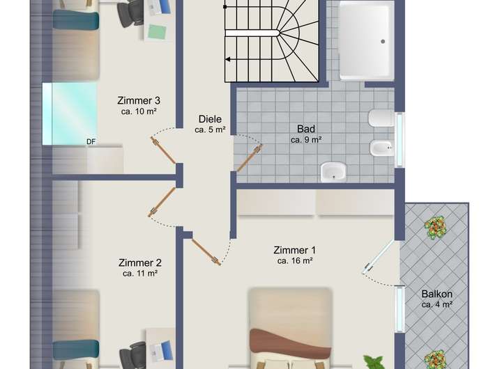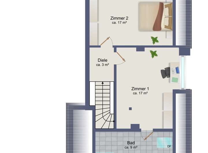 + OG: 2 Schlafzimmer, stillgelegtes Bad