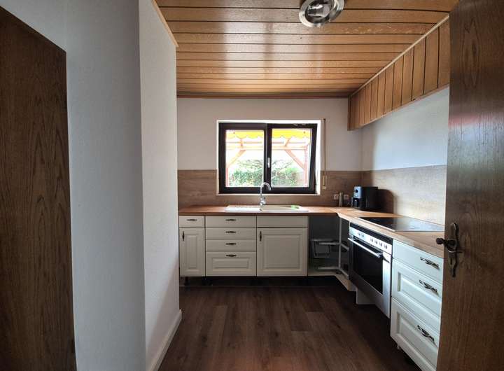 Die separate Einliegerwohnung verfügt über einen eigenen Eingang, ein großzügiges Zimmer mit integrierter Küchenzeile sowie ein innenliegendes Duschbad.