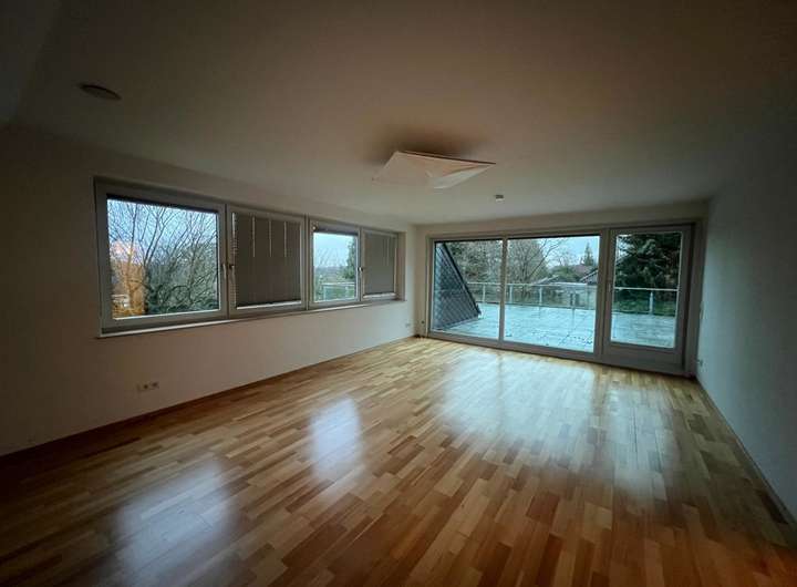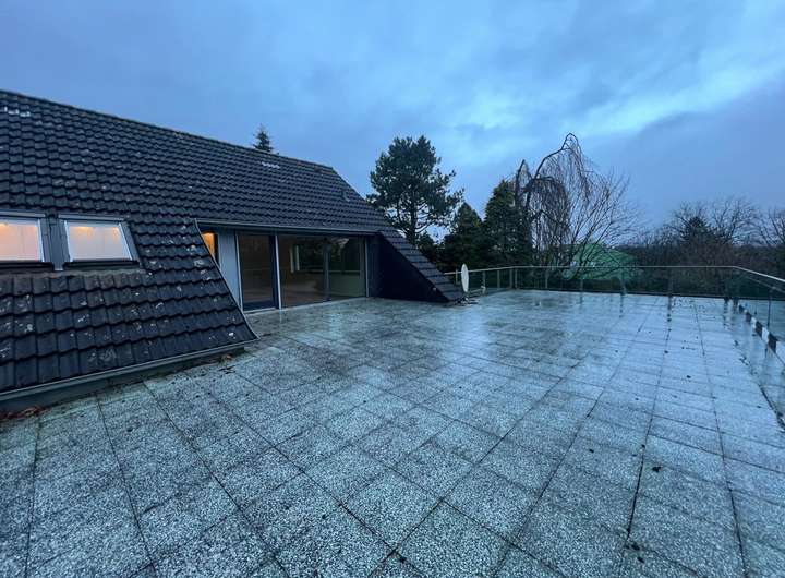 Das ausgebaute Dachgeschoss beherbergt ein Schlafzimmer mit angrenzender Ankleide, zwei weitere Zimmer, ein Badezimmer sowie ein separates WC. Von der großen Dachterrasse über der Schwimmhalle genießen Sie einen schönen Ausblick ins Grüne.