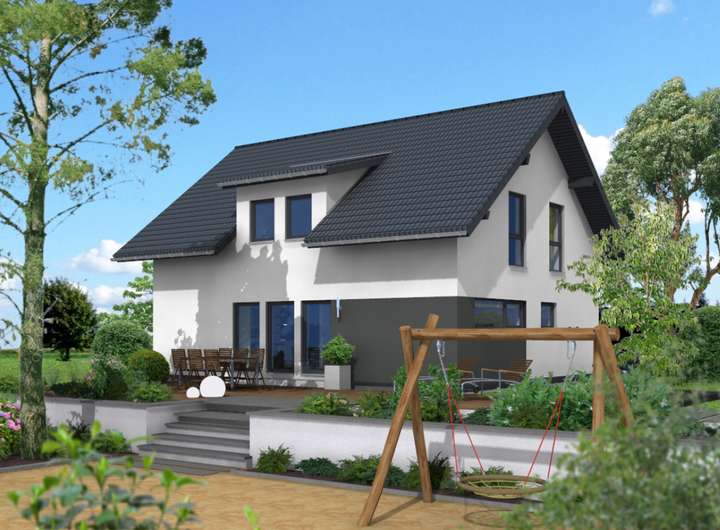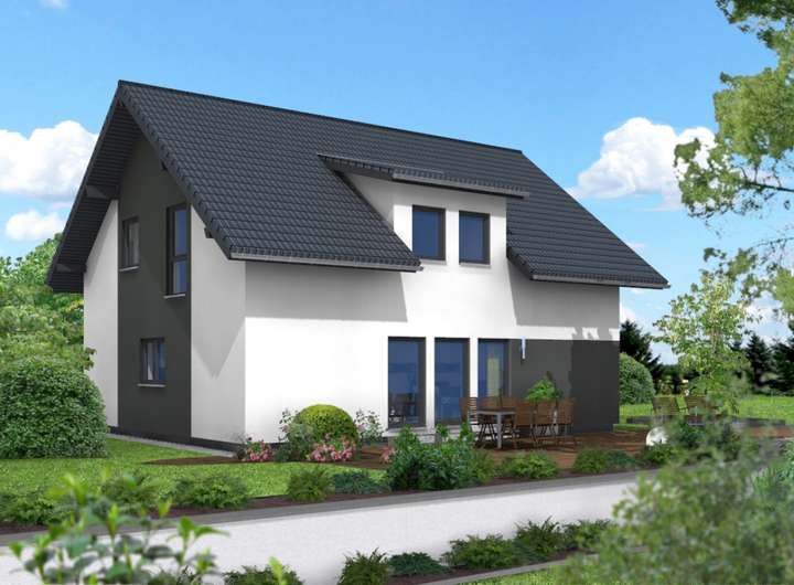 Ein Musterhausbeispiel mit den Maßen 11,4 x 9,3 Meter liegt vor. Die Wohnfläche des Hausbeispiels beträgt 171 m² und verteilt sich auf das Erd- und Dachgeschoss. Bei einer vollständigen Unterkellerung des Musterhauses profitieren Sie von einer zusätzlichen Nutzfläche mit knapp 90 m². Auf Anfrage erhalten Sie weitere Details zum Objekt eines renommierten Fertighausanbieters (u.a. Grundrisse, Baubeschreibung und Baukostenindikation).