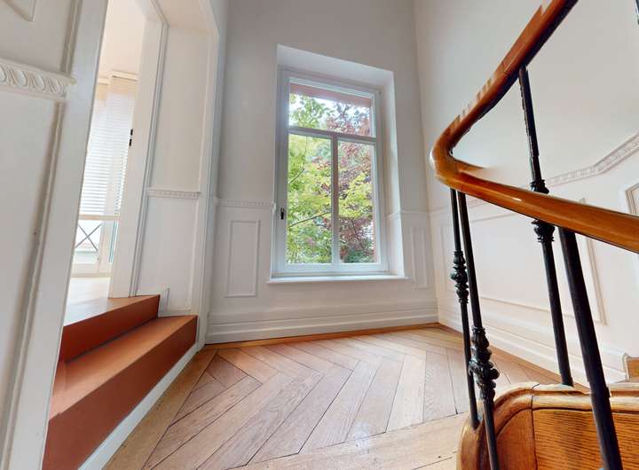 Die herrschaftliche Immobilie mit sechs großzügigen Zimmern und zwei geräumigen Tageslicht Badezimmern wurde grundlegend und aufwendig saniert und liebevoll, stilgetreu nach Denkmalschutzvorgaben revitalisiert, damit alle Stilelemente beibehalten werden: