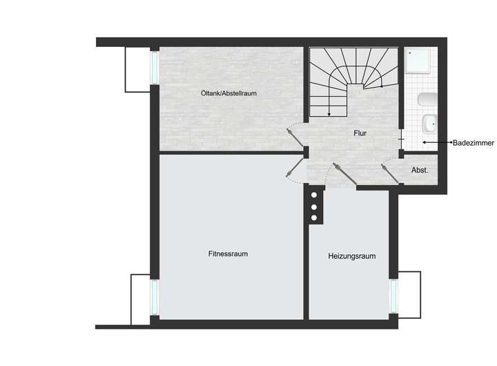 Im Kellergeschoss finden Sie einen Heizungsraum, einen Öltankraum sowie einen großen, lichtdurchfluteten Fitness- oder Hobbyraum, den Sie ganz nach Ihren Wünschen gestalten können. Außerdem gibt es ein separates Badezimmer mit Dusche sowie einen praktischen Wasch- und Trockenbereich.