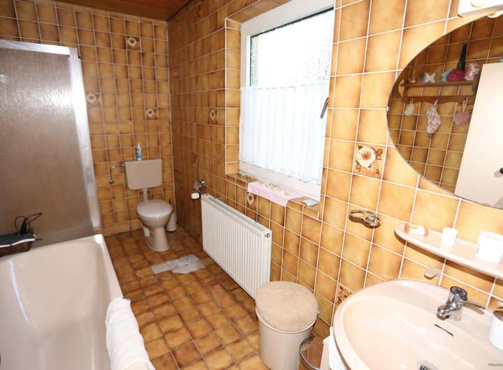 Das Dusch- und Wannenbad ist praktisch aufgeteilt. Eine Sanierung/Modernisierung des Bades ist aber notwendig.