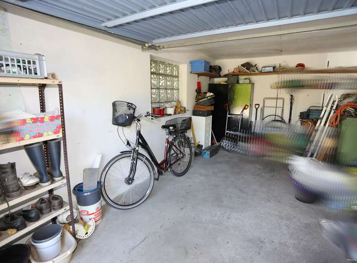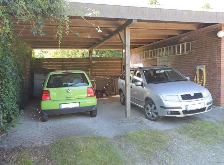 Eine Garage mit Abstellraum und ein Doppelcarport komplettieren die Immobilie.
