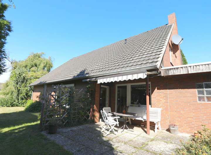 Das Einfamilienhaus bietet ca. 111 m² Wohnfläche auf einer Ebene. Bei zusätzlichem Platzbedarf können zusätzliche Flächen im Dachgeschoss geschaffen werden. Der Flur ist für eine noch einzubauende Treppe großzügig ausgeführt. Das Wohnzimmer hat ein großes Fensterelement mit Blick in den Garten und einen Ausgang auf die Terrasse.