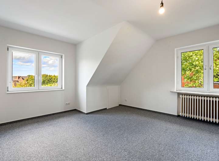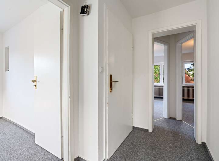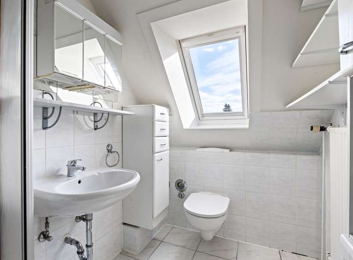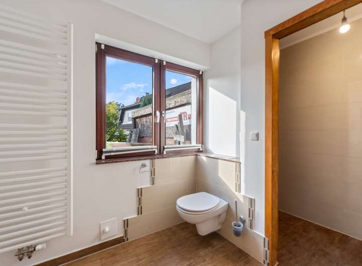 Im Obergeschoss erwarten Sie drei gut geschnittene Zimmer sowie ein halbes Zimmer, welche flexibel als Kinder-, Arbeits- oder Gästeräume genutzt werden können. Außerdem ist hier ein Vollbad zu finden.