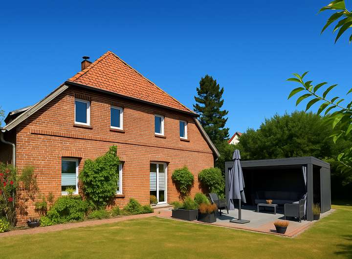Manchmal betritt man ein Haus und spürt sofort: hier ist etwas Besonderes entstanden. Dieses denkmalgeschützte Schmuckstück, 2023 bis 2024 mit viel Liebe und Feingefühl saniert, ist genau so ein Ort: Außen die kraftvolle Klinkerfassade, die Geschichte erzählt. Innen lichtdurchflutete Räume, die Moderne, Großzügigkeit und Geborgenheit vereinen. Schon der Eingangsbereich öffnet sich wie eine Einladung. Von dort tritt man hinein in die offene Wohnküche – das Herzstück des Hauses mit seinen 43 m². Diese hochwertige Luxusküche vereint zeitloses Design mit modernster Technik und erlesenen Materialien. Klare Linien, grifflose Fronten und Arbeitsflächen aus edlem Naturstein verleihen ihr eine elegante Ausstrahlung, die sich harmonisch in das anspruchsvolle Wohnkonzept einfügt. Praktische Rollschränke bieten maximalen Stauraum und höchste Bedienfreundlichkeit. Ein integrierter Quooker liefert auf Knopfdruck kochendes, sprudelndes oder gekühltes Wasser und macht den Küchenalltag so komfortabel wie nie zuvor. Die Ausstattung mit Premium-Elektrogeräten namhafter Hersteller - Miele und Gaggenau - erfüllen selbst höchste Ansprüche. Ein nahezu geräuschloser Geschirrspüler und ein übergroßer High-End-Kühlschrank runden das Ensemble ab. Ob beim gemeinsamen Kochen mit Freunden oder beim sonntäglichen Familienfrühstück am großen Holztisch – dieser Raum lebt von Begegnungen. Das angrenzende Wohnzimmer mit seinen 55 m², mit Zugang zur Terrasse, ist wie geschaffen für gemütliche Winterabende sowie regen Austausch mit Gästen. Kernstück dieses Bereiches ist der massiv gemauerte Speicherofen mit integrierter Sitzbank, der speziell für die effiziente Beheizung eines Wohn- und Esszimmers konzipiert wurde. Der Aufbau erfolgt mit Schamottesteinen im Kern, die aufgrund ihrer hohen Wärmespeicherkapazität die im Feuer erzeugte Energie aufnehmen und über viele Stunden gleichmäßig wieder an den Raum abgeben. Dadurch entsteht eine angenehme Strahlungswärme, die der natürlichen Sonnenwärme ähnelt und ein besonders behagliches Raumklima schafft. Die Anlage kombiniert somit hohe Energieeffizienz, nachhaltige Heiztechnik und Wohnkomfort auf elegante Weise. Und dann dieser zweite Bereich im Erdgeschoss: mit eigenem Eingang - voller Möglichkeiten. Ein Atelier, in dem Ideen Gestalt annehmen. Eine Praxis, die Arbeit und Privates elegant trennt. Eine Gästewohnung, in der Besucher sich willkommen fühlen. Oder einfach zusätzlicher Wohnraum, wenn das Leben wächst. Dieses Haus denkt mit – und wächst für jeden Bedarf mit. Im Obergeschoss setzt sich das Gefühl von Freiheit fort. Hier liegen die privaten Rückzugsorte: Schlafzimmer, in denen man die Ruhe spürt, und zwei Bäder, die mit hochwertigen Materialien, u.a. hat das WC ein Aqua-Clean-System, Wellness-Charakter versprühen. Ein maßgefertigter Ankleideraum,feine Tischlerarbeit, verwandelt auf knapp 85 m² den Alltag in ein kleines Ritual – eine stilvolle Beleuchtung die mitläuft, Oberlichter, die den Morgen mit weichem Licht begrüßen.Ein weiteres Highlight: der Loftbereich. Beeindruckende Raumhöhe, ein durchgehendes Lichtband im Dach, ein Ort voller Energie. Ob als privater Fitnessbereich, Spa-Oase, Studio oder Atelier – dieser Raum ist wie eine leere Leinwand für Ihre Ideen. Auch ans Alter wurde gedacht - die Möglichkeit zum Einbau eines Aufzuges wurde berücksichtigt. Auch draußen setzt sich dieses Gefühl von Freiheit fort: Die großzügige Terrasse wird zum zweiten Wohnzimmer, der eingegrünte Garten bewahrt die Privatsphäre und das Carport und die Stellplätze bieten Platz für Ihre Fahrzeuge und es bleibt die Option zum Garagenbau, welcher den Komfort. noch einmal steigert. Ein Brunnen sorgt auch in regenarmen Sommern für das entsprechende Nass für den Garten. Dieses Haus ist mehr als eine Immobilie – es ist ein Statement. Eine perfekte Symbiose aus Geschichte und Moderne, Individualität und Funktionalität.