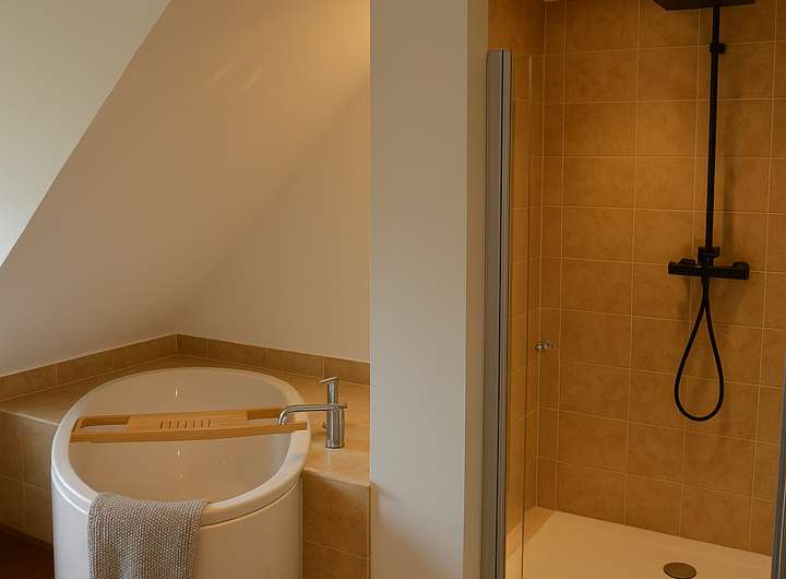 • Stilvolle Verbindung von Denkmalschutz und moderner Architektur • Hochwertige Tischlerarbeiten in allen Bereichen • Maßgeschneiderte Premiumküche mit Kochinsel & deckenhohen Schränken • Speicherofen mit Sitzbank, modern und elegant • Exklusive Ankleideräume mit Beleuchtung & Oberlich- tern • Loftbereich mit außergewöhnlicher Raumhöhe und Dachlichtband • Flexible Nutzung: Einfamilienhaus, Wohnen & Arbeiten, Einliegerwohnung oder Praxis • Carportanlage mit zwei Stellplätzen, Garage möglich • Großzügige Terrasse mit direktem Zugang vom Wohn- bereich, eingerünter Garten • Durchgängig hochwertige Ausstattung in sämtlichen Bereichen der Immobilie