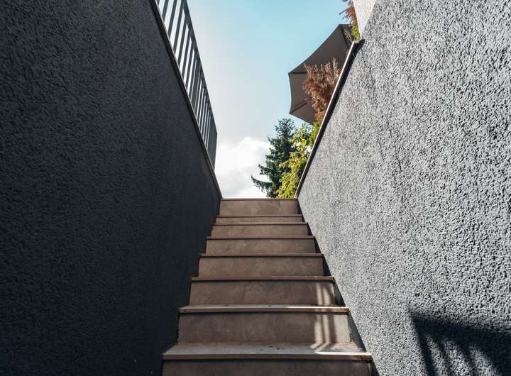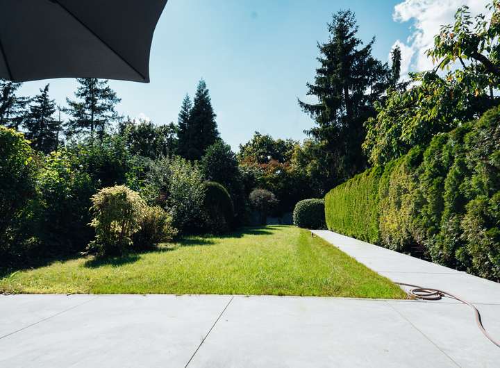 • Terrasse: ca. 25 m² – sonnig & geschützt, ausgelegt mit hochwertigen 1,20 x 1,20 m Feinsteinzeugfliesen – ideal für entspannte Stunden Balkon: ca. 8 m² im Obergeschoss – mit schönem Blick ins Grüne