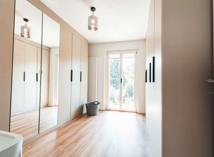 • Ein Zimmer verfügt über Einbauschränke und wird derzeit als Ankleidezimmer genutzt – ideal für Ordnung & Stil