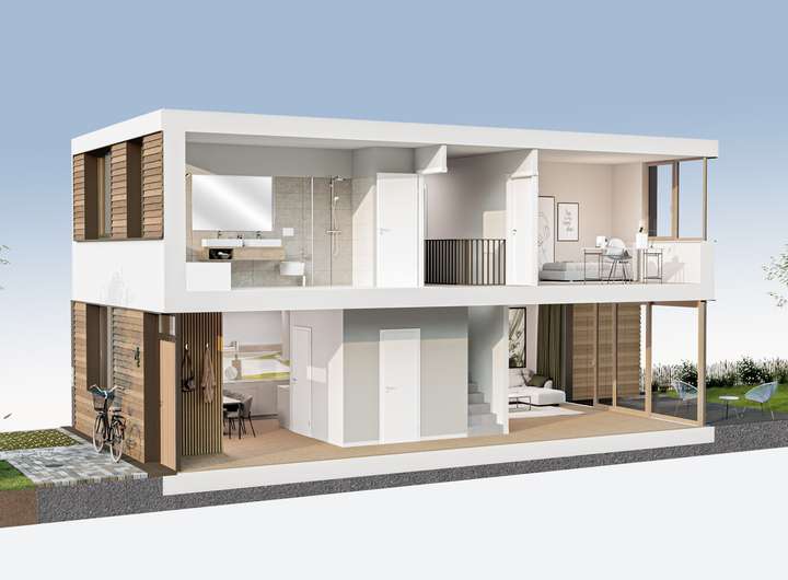 + Verwendung von nachhaltigen Baustoffen wie Holz und Zellulosedämmung