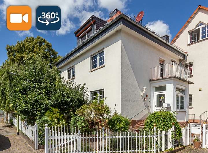 Dieses großzügige Einfamilienhaus bietet insgesamt 265 m² Wohnfläche auf drei Ebenen. Es wurde 1924 errichtet und 1994 umfangreich modernisiert und erweitert. Insgesamt acht Zimmer, zwei davon mit Zugang zum Balkon, sowie vier Bäder, bieten großzügigen Raum zur individuellen Entfaltung. Das Haus steht nicht unter Denkmalschutz und teilt sich mit dem Nachbarhaus ein gemeinsames Grundstück.