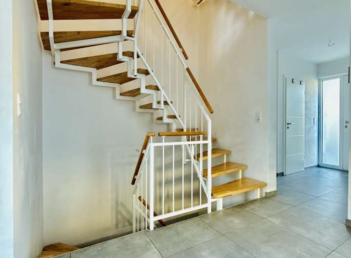 Die Bodenbeläge aus hochwertigen Fliesen und Vinyl sowie große Kunststofffenster mit Isolierverglasung verleihen dem Haus einen hellen und freundlichen Charakter. Alle Fenster sind zudem mit elektrischen Rollläden ausgestattet.