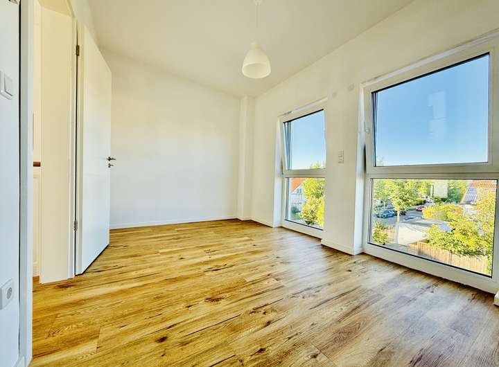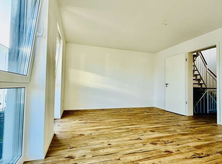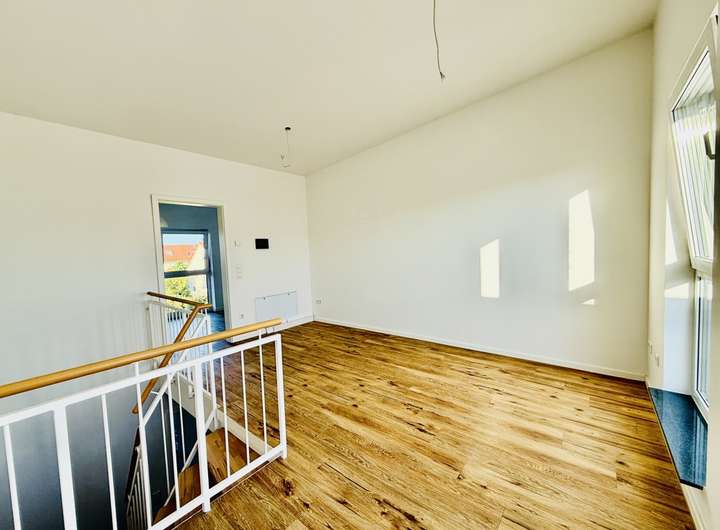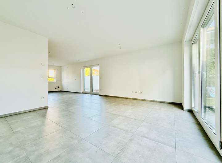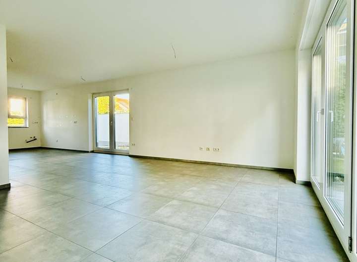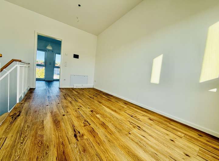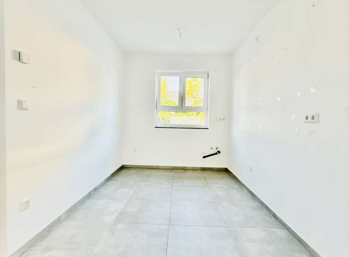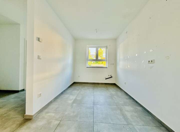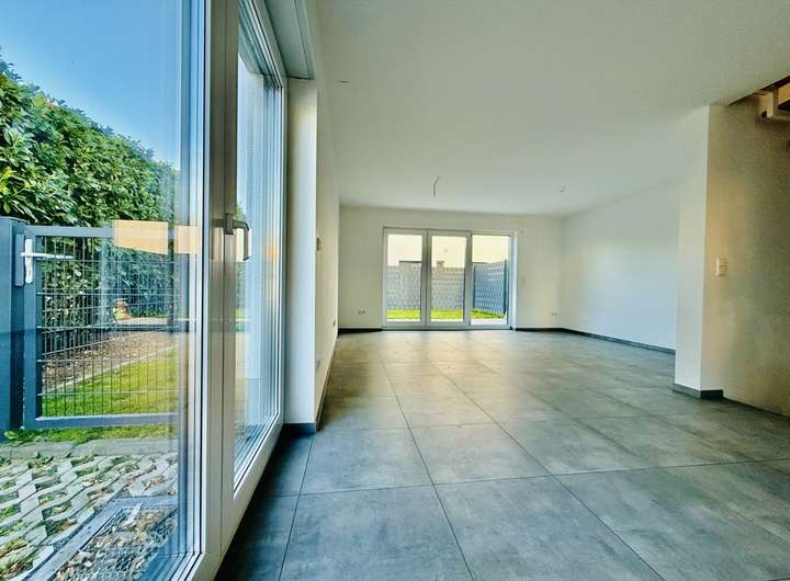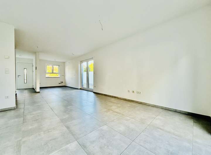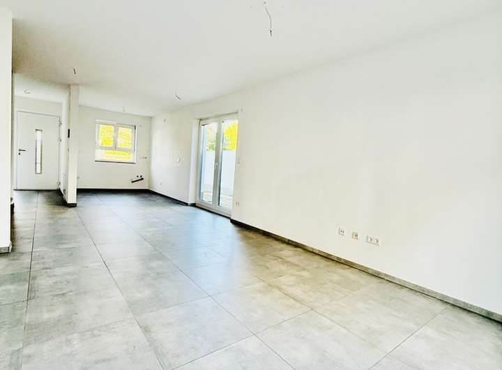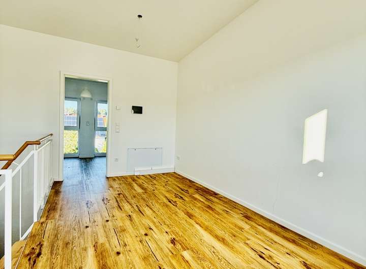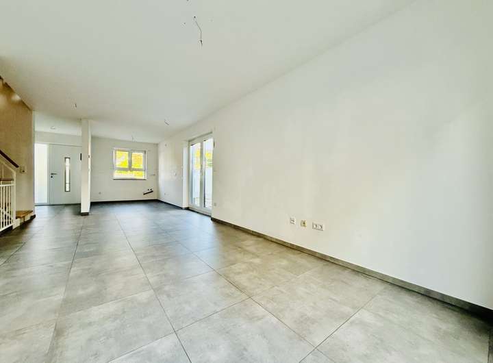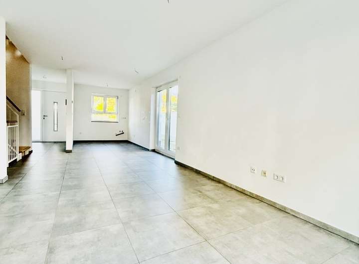 Beim Betreten des Hauses gelangen Sie in einen großzügigen Eingangsbereich, von dem aus das Gäste-WC mit Fenster sowie der weitläufige Wohn-/ und Essbereich mit einer offengestalteten Küche erreichbar sind. Die Küche bietet Platz für eine großzügige Einbauküche.