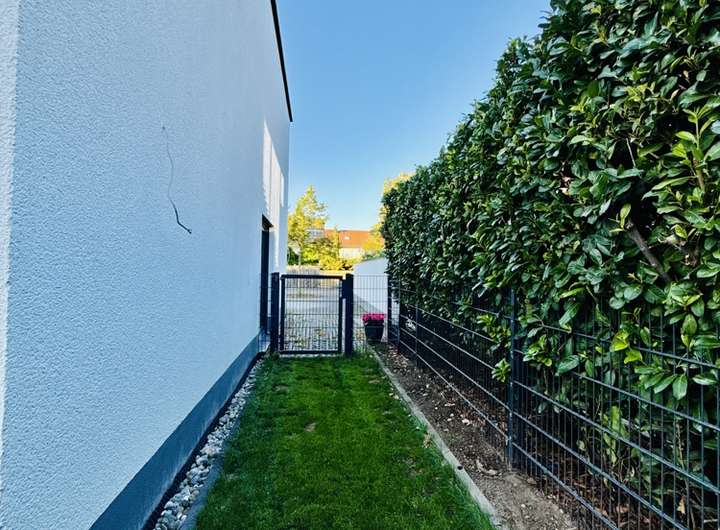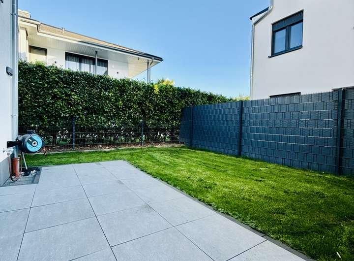 Die einladende Terrasse und der pflegeleichte Garten bieten viel Raum für Erholung und gesellige Stunden. Ein Zaun mit Sichtschutz gewährleistet Ihre Privatsphäre.
