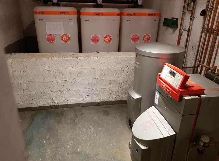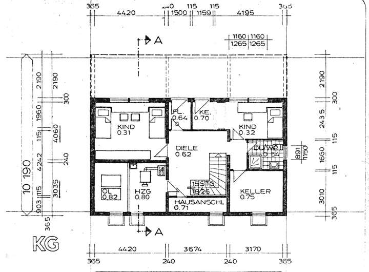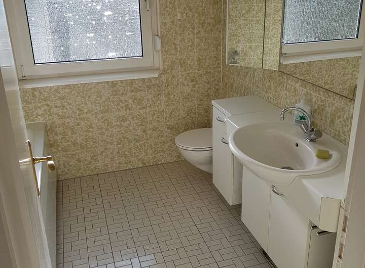 Außerdem befinden sich hier der Heizungsraum mit gut gewarteter Öl-Zentralheizung (Baujahr 2001) und drei ummauerten Öltanks sowie ein Kellerraum mit Wasseranschlüssen, der bisher als Hauswirtschaftsraum diente. Ergänzt wird das Untergeschoss durch einen kleineren Kellerraum, der als Vorrats- und Speisekammer genutzt wurde.