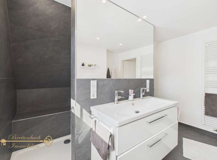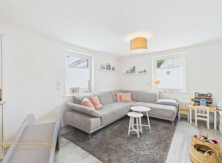 Im Erdgeschoss empfängt Sie ein heller & offen gestalteter Wohnbereich mit Wohnzimmer, moderner Einbauküche & gemütlicher Essecke – mit direktem Zugang zur Terrasse. Zudem finden Sie hier ein Gäste-WC sowie einen einladenden, offen gestalteten Flurbereich.
