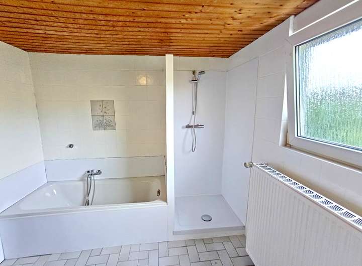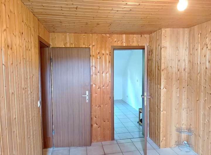Wer ein gesundes Raumklima sucht, wird sich diesem Haus wohlfühlen; der überwiegende Teil des Wohnbereichs ist an den Decken und teilweise an den Wänden mit Echtholz verkleidet.