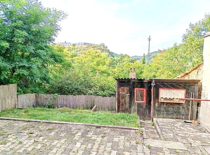 Gepflasterte Terrasse, kleiner Nutzgarten, Wäschetrockenplatz und Grillhäuschen mit einem wundervollen gemauerten offenen Kamin