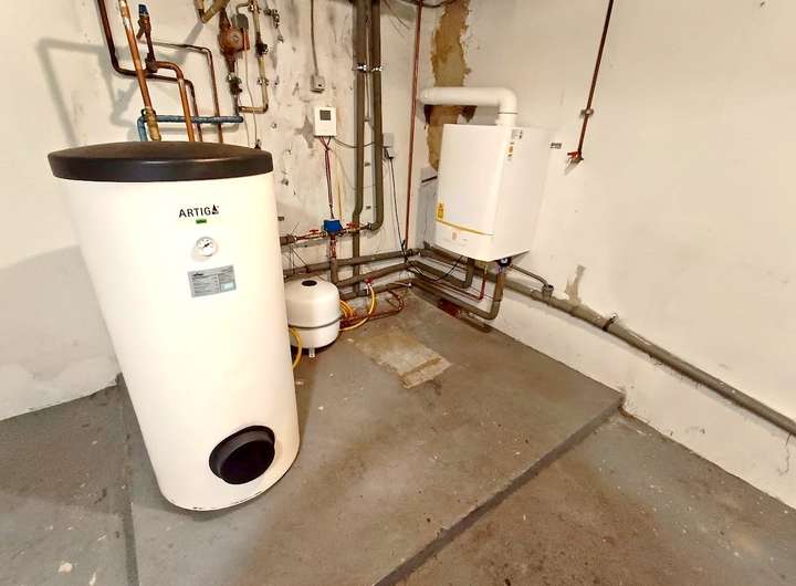 Die Wärmeversorgung durch eine Zentralheizung und die zentrale Warmwasserversorgung erfolgt durch eine erst drei Jahre alte Gas-Brennwertherme.