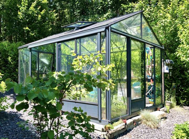 Gewächshaus mit Frostwächter in Anthrazit und Glas