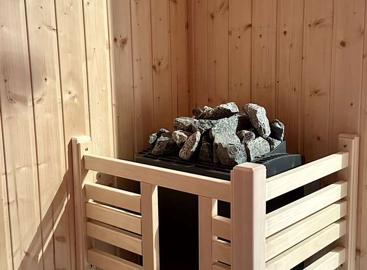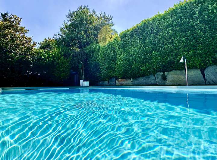 Beheiztes Schwimmbad mit Gegenstromanlage; Schwalldusche