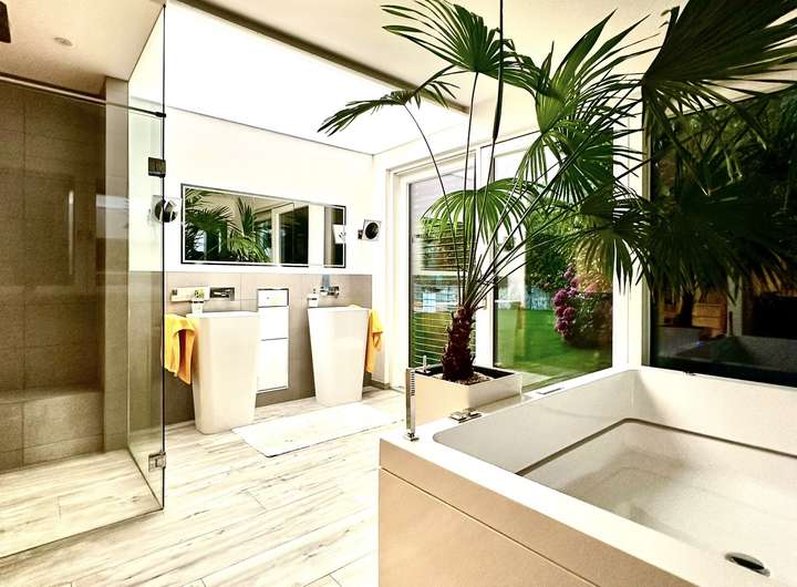 Diese absolut energieeffiziente Villa im Bauhaus-Stil mit einer Gesamtfläche von ca. 600 m² (nach DIN 277) und über 400 m² Wohnfläche bietet auf Basis eines sehr durchdachten Grundrisses grosszügige, lichtdurchflutete flexible Räume.