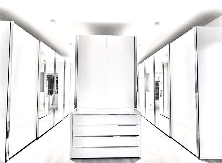 Begehbarer grösszügiger Schrankraum Mastersuite mit Extra-Bereich für Accessoires
