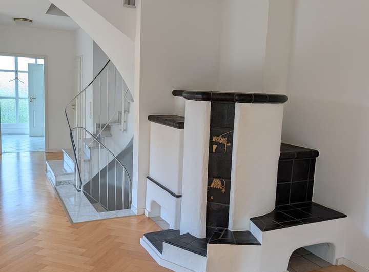 Die hochwertigen Böden aus Escheparkett im Fischgrätmuster sowie stilvolle Fliesen und eine Fußbodenheizung runden das Erdgeschoss ab.