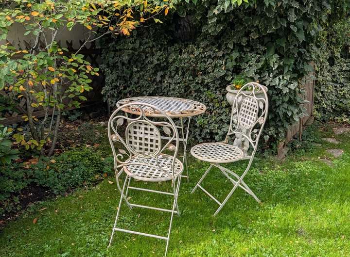 Eine Garage mit zusätzlichem Stellplatz, ein liebevoll angelegter Garten mit Gartenhütte und gemütlichen Sitzmöglichkeiten laden zum Verweilen ein.