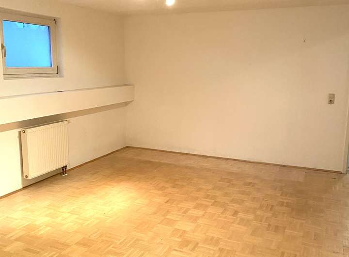 Der Keller bietet viel Stauraum sowie ein helles Büro mit großem Fenster und Stiftelparkett – perfekt für Homeoffice, Hobby oder Fitness.
