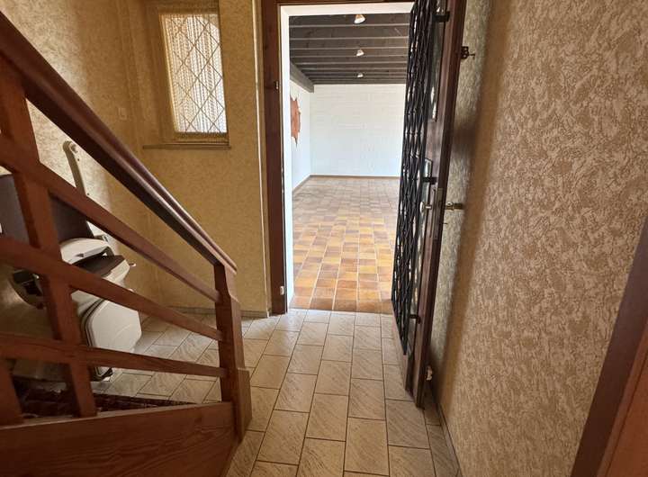 Im Erdgeschoss ist die große Küche mit einer kleiner Vorratskammer, ein Wohn und Esszimmer , eine große Diele und ein Gäste WC mit Zugang zu dem Wintergarten.