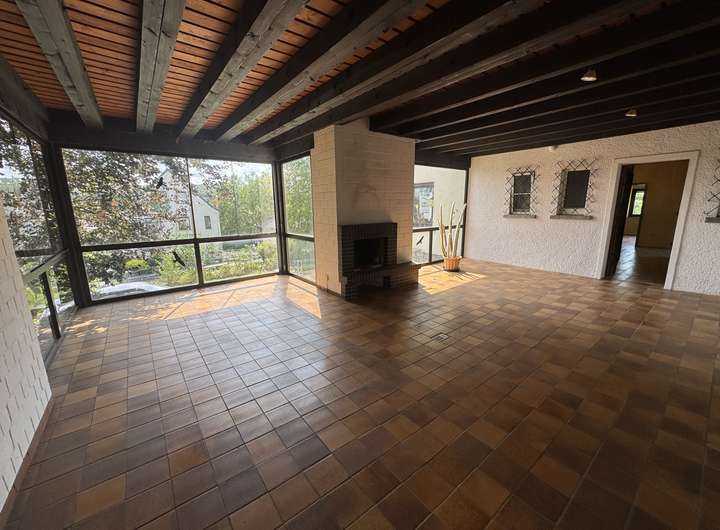 Freistehendes Einfamilienhaus mit sehr großem Wintergarten und Kamin