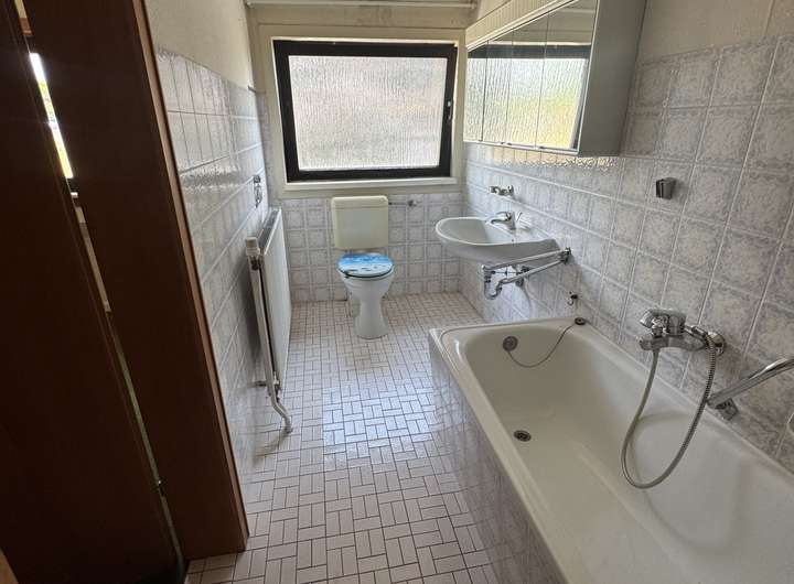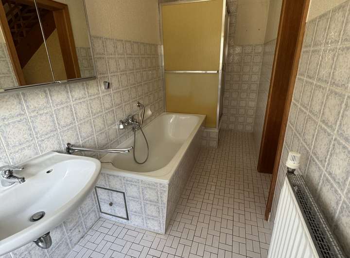 Im Obergeschoss sind drei Schlafzimmer, ein Bad mit Wanne und Dusche und die Diele.