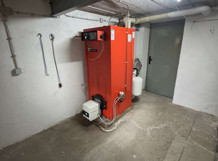 Es besitzt eine Öl Zentralheizung mit Warmwasser Versorgung.