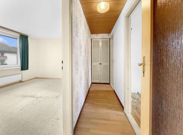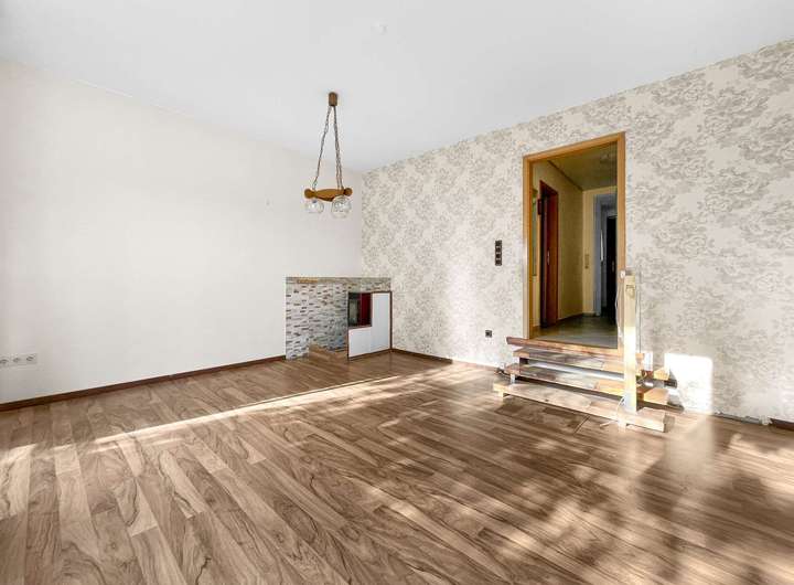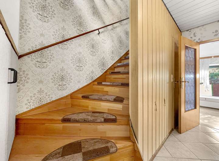 - 93 m² Wohnfläche, Grundstück 131 m² - 4 Zimmer, davon ein ausgebautes Dachzimmer - Wohnzimmer mit großem Fenster und Terrassenzugang - Küche mit Blick zum Hauseingang - Bodenbeläge: Fliesen und Laminat - Keller für zusätzlichen Stauraum und die Heizung - 29 Jahre alte Ölheizung - Alte Elektrik - Kleiner Garten mit Gartenhaus - Teilweise erneuerte Fenster, teilweise mit elektrischen Außenjalousien - Sofort beziehbar, Haus steht leer
