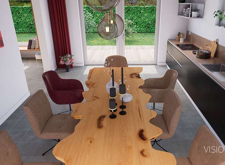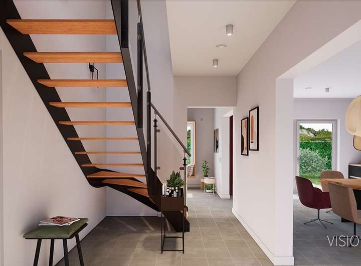 Pult 17 - bereits von außen ein wahrer Blickfang! Die Fassade beeindruckt mit ihrer modernen, durchdachten und außergewöhnlichen Architektur. Der spezielle Grundriss mit einem zurückgesetzten Bereich schafft auf der Vorder- und Rückseite zwei windgeschützte Terrassen. Extravaganz und Eleganz perfekt vereint. Das gilt auch für das Innere: Hier begeistert die durchdachte Raumaufteilung ebenso wie der großzügige Schnitt, der einen weitläufigen Wohn- und Kochbereich sowie ein anschließendes Wohnzimmer umfasst. Das Erdgeschoss wird ergänzt durch einen Hauswirtschaftsraum und ein Gäste-WC. Über die zentral gelegene Treppe gelangt man in das Obergeschoss mit einer Galerie, einem Elternschlafzimmer, einem geräumigen Badezimmer mit Badewanne und Dusche sowie zwei Kinderzimmern. Ein besonderes Highlight ist der große Balkon mit elegantem Glasgeländer.