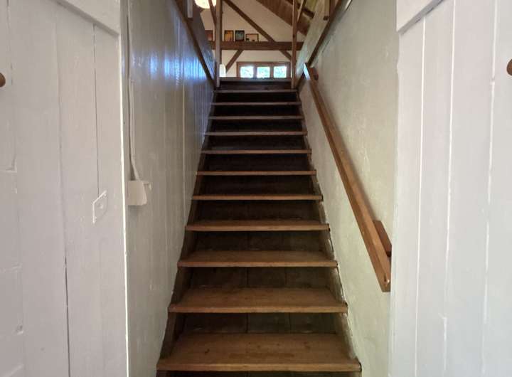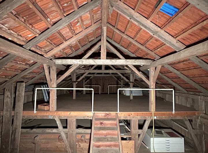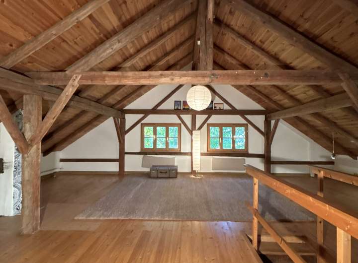 Die große, vielfach nutzbare Dachgeschossfläche der Scheune ist über eine Außentreppe zu erreichen.