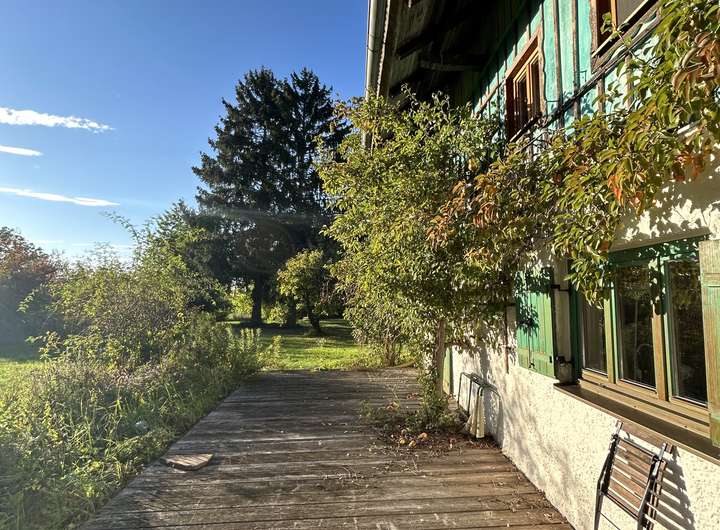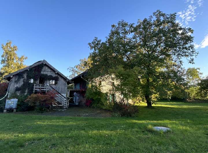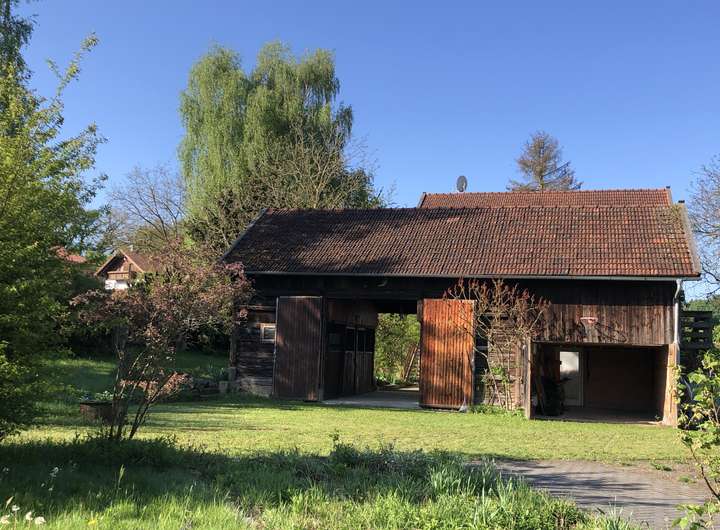 In einem großen Ebenen Garten und Wiesengrundstück mit zwei Zugangsmöglichkeiten liegt dieses Anwesen bestehend aus einem ehemaligen Bauernhaus von circa 1910 und dazugehöriger Scheune.