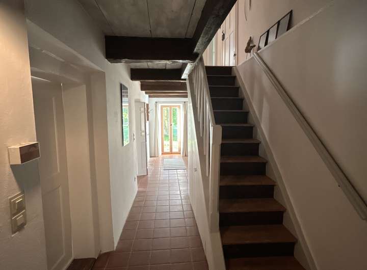Dieses Stockwerk ist auch über eine Außentreppe und eine weitere Eingangstür erreichbar.