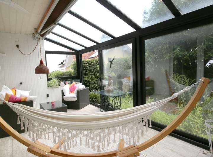 Wintergarten aus 2015 mit Markise, Einzelgarage