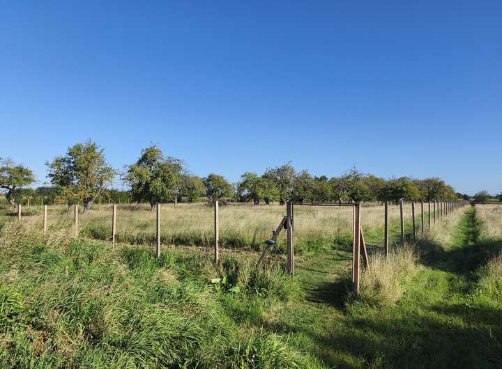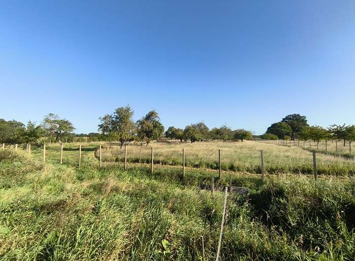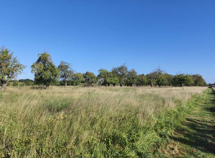 Das restliche Grundstück von ca. 18.255 m² besteht aus einer malerischen Streuobstwiese und Grünland, von dem 1 Hektar bereits eingezäunt ist. Hier können Sie die Natur in vollen Zügen genießen und leckere Früchte in Form von Äpfel, Birnen und Kirschen ernten.