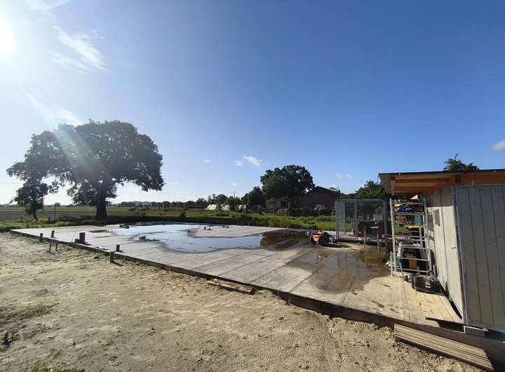 Das Grundstück bietet etwa 3.890 m² bebaubare Fläche, auf der bereits eine Baugenehmigung für ein Holzhaus mit ca. 300 m² Wohnfläche, aufgeteilt auf zwei Wohneinheiten, sowie für ein Nebengebäude vorliegt. Perfekt für z.B. zukünftiges Mehrgenerationenwohnen oder aber die Vermietung einer Ferienwohnung. Die vorhandene Bodenplatte mit einer Fläche von 300 m² ist bereit für die Errichtung Ihres Traumhauses. Die Bodenplatte ca.135 m² inkl. der Anschlüsse für das Nebengebäude ist ebenfalls bereits vorhanden. Das geplante Nebengebäude wäre aufgrund der Größe, auch ideal als Pferdestall mit Reiterstube denkbar, oder als weiteres zusätzliches Ferienhaus, Garage mit Werkstatt usw. Ihre Kreativität ist hier gefragt.