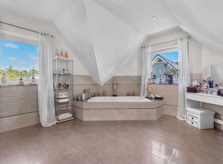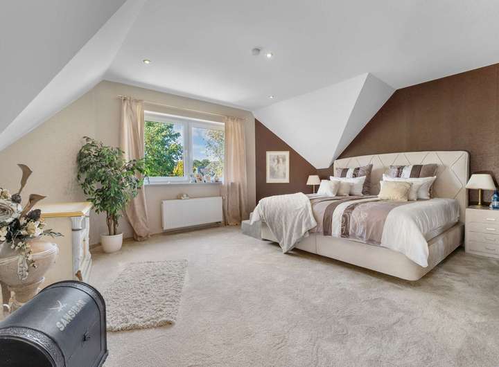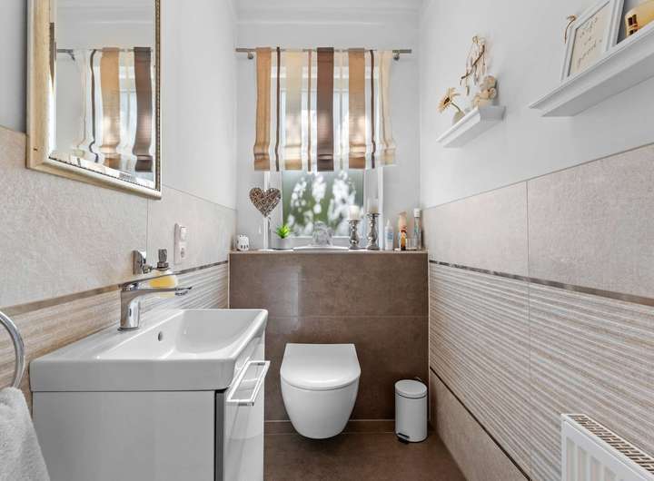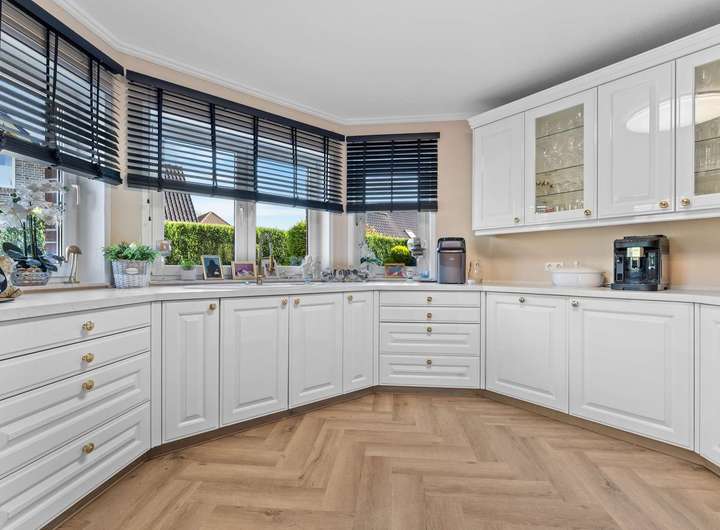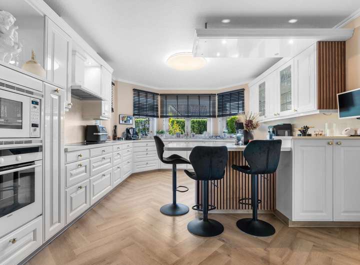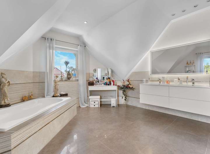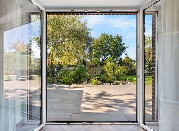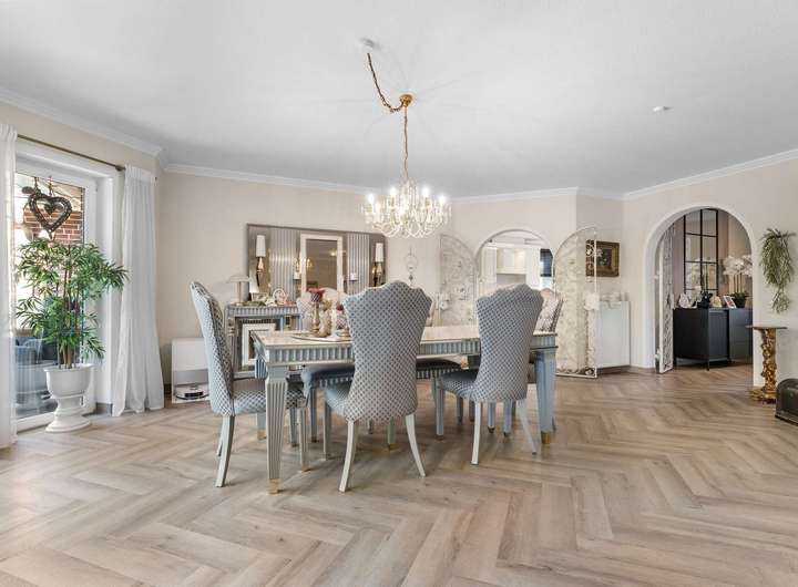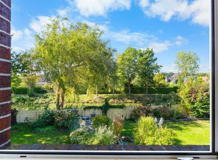 Dieses kürzlich renovierte Einfamilienhaus ist ein echtes Traumhaus für alle, die das Besondere suchen. Mit ca. 240 m² Wohnfläche auf zwei Etagen begeistert es durch einen offenen Grundriss, hochwertige Ausstattungsdetails und eine traumhafte Lage. Eingebettet in eine ruhige Stichstraße in gepflegter Nachbarschaft bietet die Immobilie die perfekte Kombination aus Privatsphäre, Naturverbundenheit und kurzen Wegen ins Stadtzentrum. Das einmalig gelegene Grundstück überzeugt mit einem nicht einsehbaren, wunderschön angelegten Garten samt idyllischem Teich. Direkt angrenzend befindet sich ein Regenrückhaltebecken, auf dem Enten ihre Bahnen ziehen. Besonders aus dem Hauptschlafzimmer der oberen Etage bietet sich dieser traumhafte Ausblick – hier beginnt jeder Tag mit einem Blick ins Grüne. Schon beim Betreten des Hauses empfängt Sie eine großzügige, bis ins Obergeschoss geöffnete Diele, die ein Gefühl von Luxus und Weite vermittelt. Das riesige, lichtdurchflutete Wohn- und Esszimmer mit fantastischem Blick in den Garten bildet das Herzstück des Hauses. Hier sorgt ein hochwertiger Kaminofen der Marke Aduro für behagliche Wärme und eine gemütliche Atmosphäre – ein echtes Highlight in den kälteren Monaten. Die separate Küche ist mit einer hochwertigen weißen Lackküche, Frühstückstresen, modernen Elektrogeräten und praktischen Auszügen ausgestattet. Direkt angrenzend befindet sich der Hauswirtschaftsraum, von dem aus Sie Zugang zur großen Doppelgarage mit integrierter Werkstatt haben – besonders praktisch, um Einkäufe oder Gepäck direkt und trocken ins Haus zu bringen. Auf der gegenüberliegenden Seite des Erdgeschosses ergänzen ein modernes Gäste-WC sowie ein Büro- oder Gästezimmer mit flexibler Nutzungsmöglichkeit das Raumangebot. Im Obergeschoss erwarten Sie drei großzügige Schlafzimmer, eines davon mit eigenem Ankleidezimmer. Das neu sanierte Familienbad überzeugt mit bodengleicher Dusche, Badewanne, Doppelwaschbecken und stilvollen Fliesen – eine wahre Wellnessoase im Alltag. Das Hauptschlafzimmer bietet neben dem Ankleidebereich den direkten Blick auf das Regenrückhaltebecken – ein Naturidyll, das zu jeder Jahreszeit für besondere Momente sorgt. Darüber hinaus eröffnet ein riesiger, ausbaufähiger Dachboden zusätzliche Möglichkeiten zur individuellen Gestaltung. Der Außenbereich ist ein wahres Paradies. Das ca. 738 m² große Erbpachtgrundstück (Halbjahresgebühr nur ca. 550 €) bietet einen gepflegten, nicht einsehbaren Garten mit Teich, zwei Gartenschuppen und mehreren liebevoll angelegten Vogelvolieren. Eine große Auffahrt führt Sie direkt zum Haus und rundet den repräsentativen Charakter dieser besonderen Immobilie ab. Hochwertige Ausstattungsmerkmale wie Fußbodenheizung, elektrische Rollläden, eine Alarmanlage, eine sonnige Süd-West-Terrasse sowie die große Doppelgarage mit angrenzender Werkstatt und WC unterstreichen den exklusiven Anspruch des Hauses. Dieses Einfamilienhaus ist weit mehr als nur ein Zuhause – es ist ein Rückzugsort, der Großzügigkeit, Komfort und Naturerlebnis harmonisch verbindet. Ein einzigartiges Wohnensemble für Familien und Paare, die Wert auf Qualität und Lebensqualität legen. Lassen Sie sich von diesem besonderen Angebot begeistern und vereinbaren Sie noch heute Ihren persönlichen Besichtigungstermin – denn Traumhäuser wie dieses sind selten und schnell vergeben.