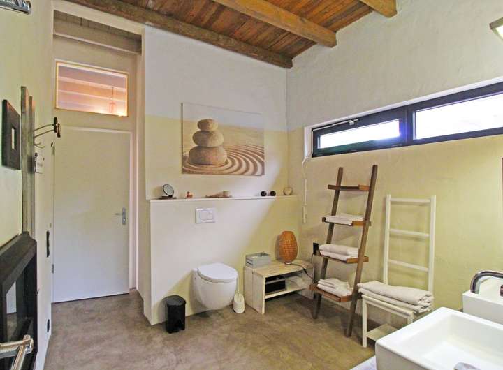 Die Einbauküche fügt sich harmonisch in das offene Wohnkonzept ein und wurde stilvoll in das Gesamtbild integriert. Das individuell gestaltete Badezimmer unterstreicht den hohen Anspruch an Design und Qualität. Schallschutztüren in allen Bereichen bieten zusätzlichen akustischen Komfort und tragen zur Ruhe im gesamten Haus bei.