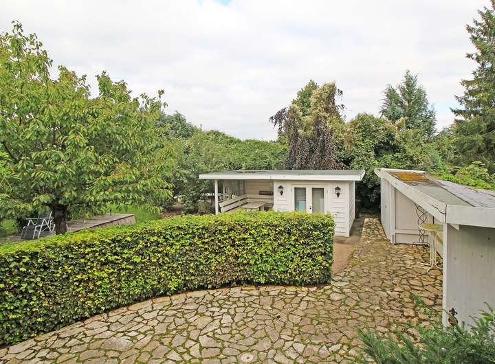 Ob zum Entspannen, Gärtnern oder für gesellige Stunden mit Familie und Freunden – dieser Garten erfüllt höchste Ansprüche an Gestaltung und Pflege. Eine überdachte Terrasse lädt ganzjährig zum Verweilen im Freien ein und bietet einen reizvollen Blick in das grüne Umfeld.