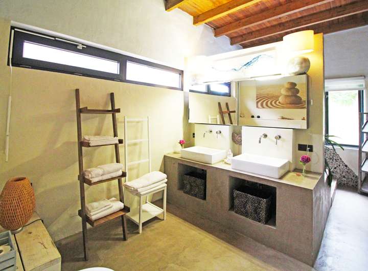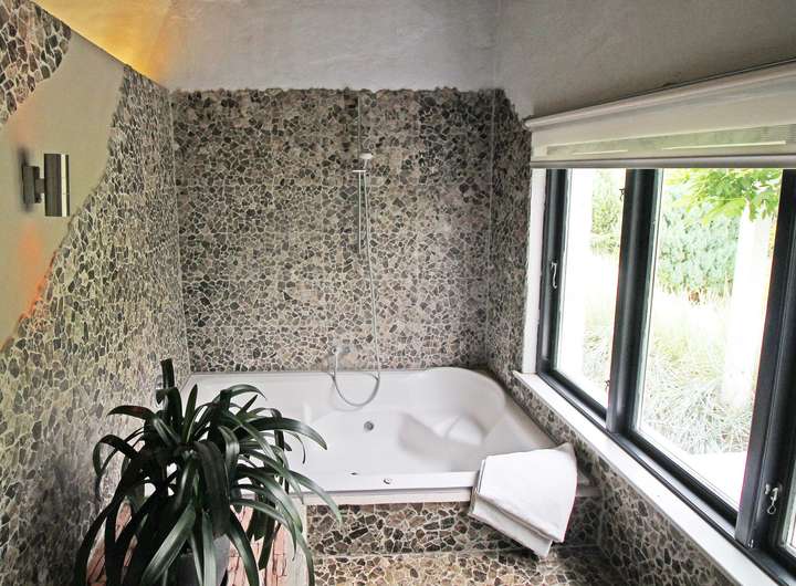 - Moderne Einbauküche, individuell gestaltetes Bad